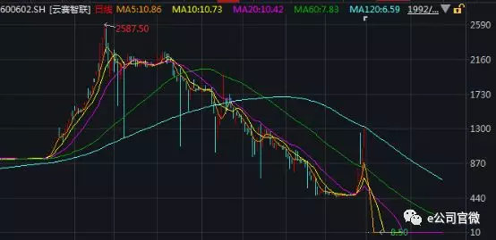 曾经的“老八股”龙头真空电子,发行价就高达365元,一年半的时间里,股价连翻6倍。其股价在1992年4月14日便达到1030.10元(不复权,下同),此后一路上涨并在1992年5月25日,盘中一度涨至2587.50元。此后,真空电子更名为云赛智联,目前仍在A股上市。