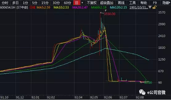 同样是“老八股”的飞乐股份,在1992年1月10日,股价达到1007.40元,成为A股历史上第一只千元股,并且同样是1992年5月25日,飞乐股份盘中涨至3550元高价,成为A股难以逾越的最高股价纪录。此后,飞乐股份更名为中安消,如今则变成了“*ST中安”。
