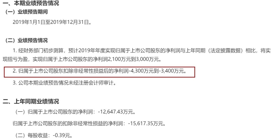 财务数据显示,2017年底遭遇“打假”后公司业绩“一落千丈”。预计2019年全年公司净利润为2100万元-3000万元,同比扭亏为盈,但扣非净利润仍为亏损。