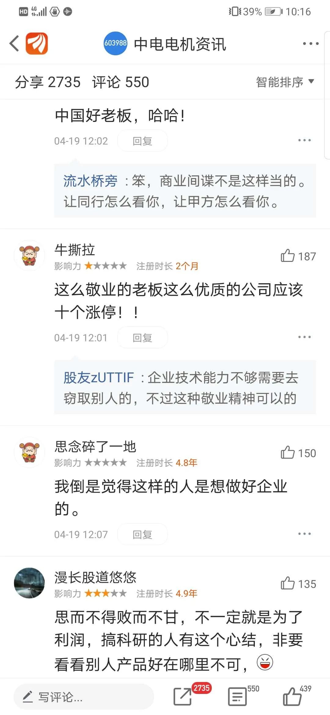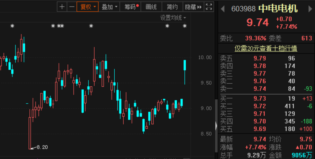 网友的“点赞”和“调侃”,在4月20日转化为行动。中电电机开盘涨停,此后股价小幅回落,早盘收报9.74元/股,涨幅达到7.74%,每股上涨0.7元,以王建裕所持5292万股计算,今天上午他的“身价”上涨3700万元!