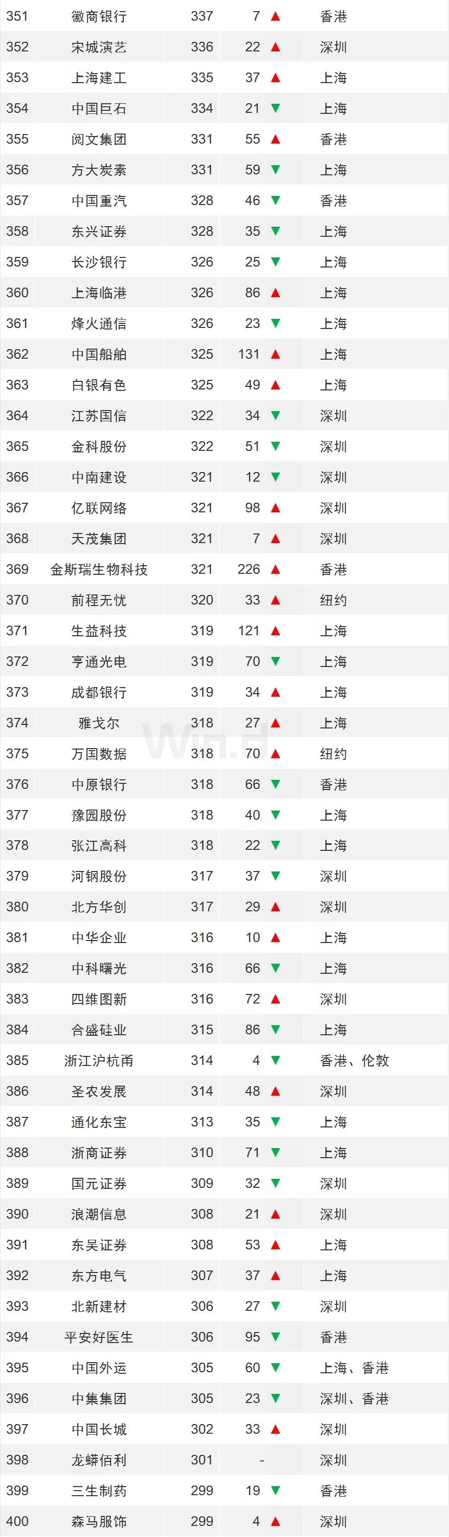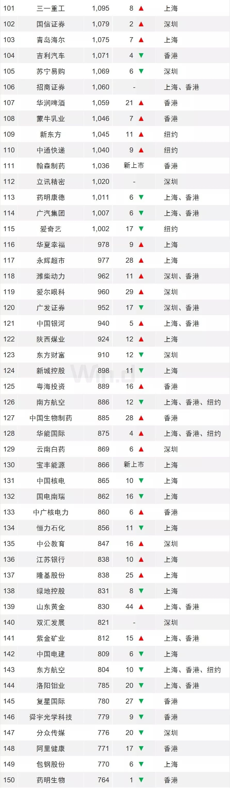 注:部分企业在中国大陆、香港、美国等地同时上市