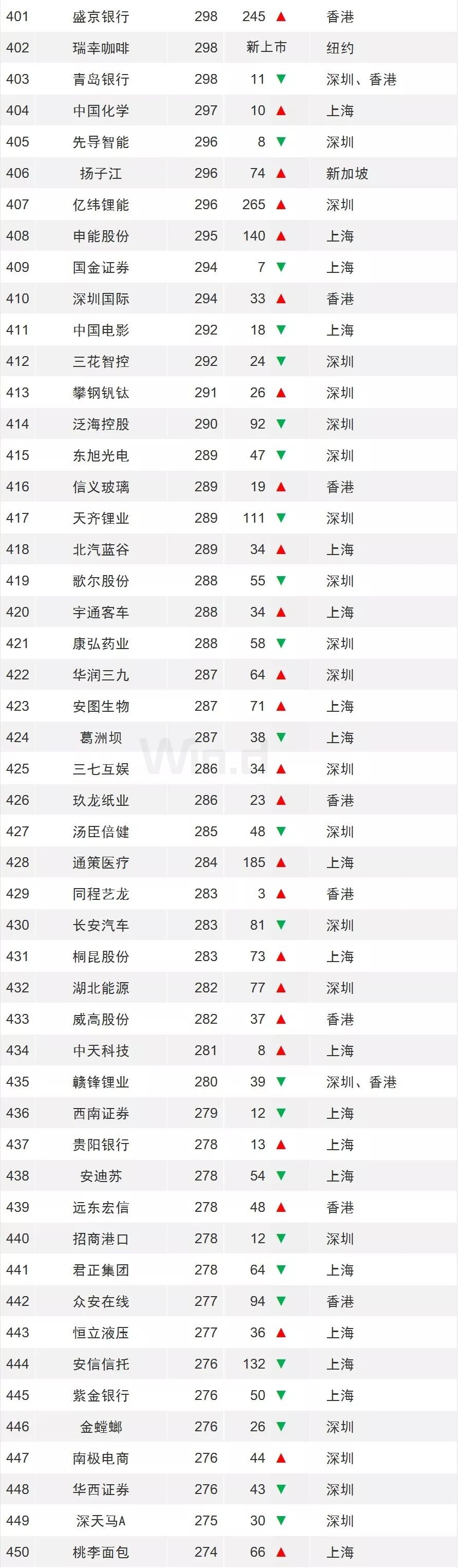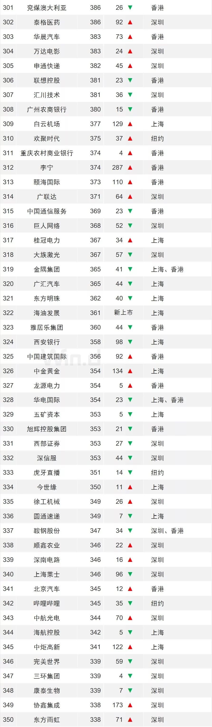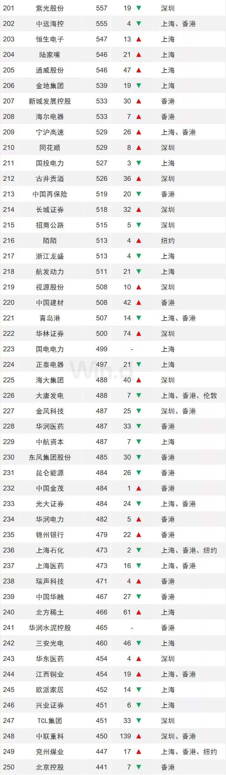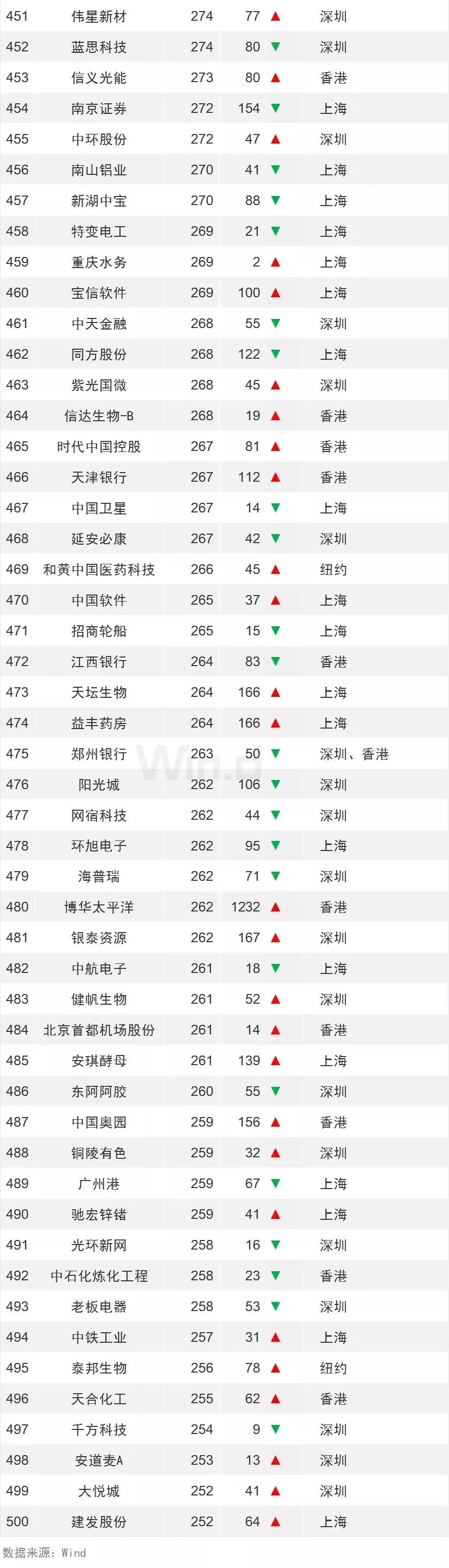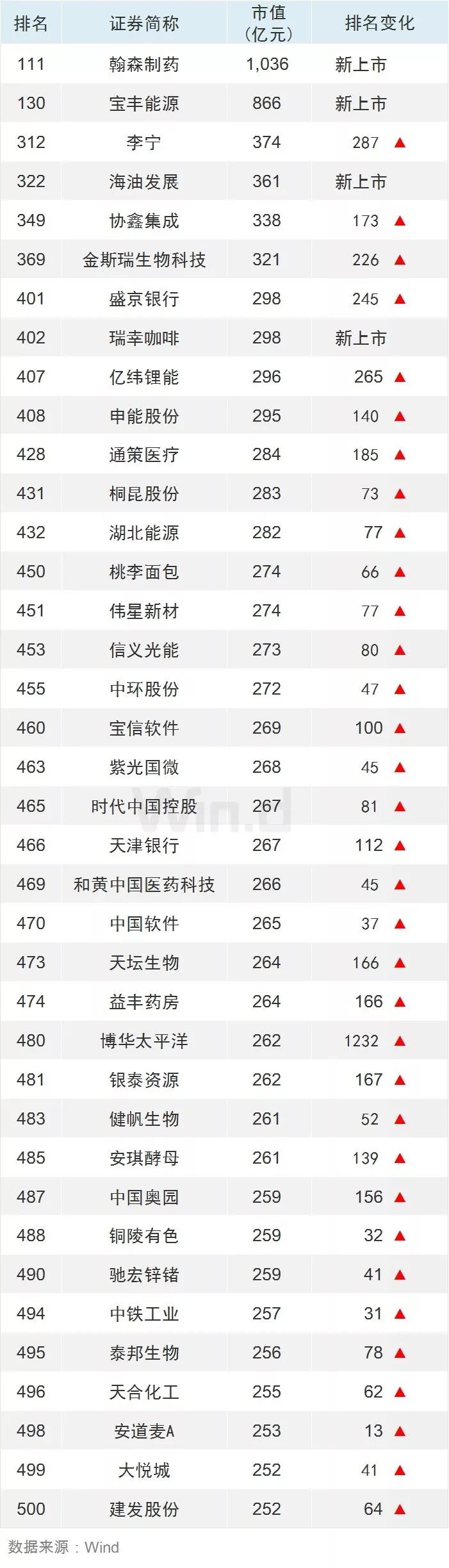 新进500强企业中,多数因股价上涨市值攀升,亦有部分新上市企业。