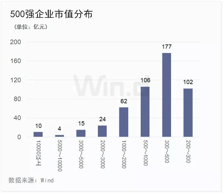 截至6月末,有10家中国企业市值超过10000亿元,大部分企业市值仍位于200-1000亿元之间,300-500亿元之间的企业最多,有177家。