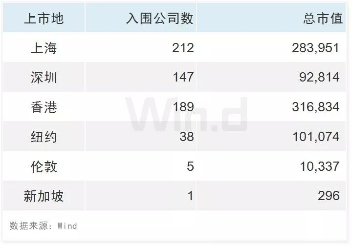 由于多数大型企业都在沪港两地上市,因此整体来看,沪港两地总市值居前。