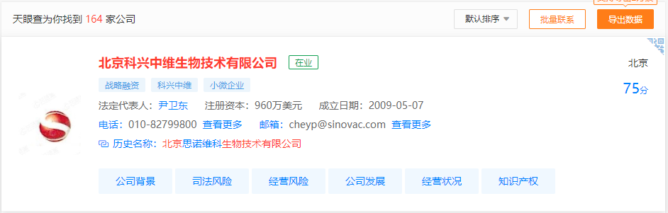 记者通过天眼查获悉,科兴中维公司法人为尹卫东,该人曾经是未名医药失控子公司北京科兴的总经理。