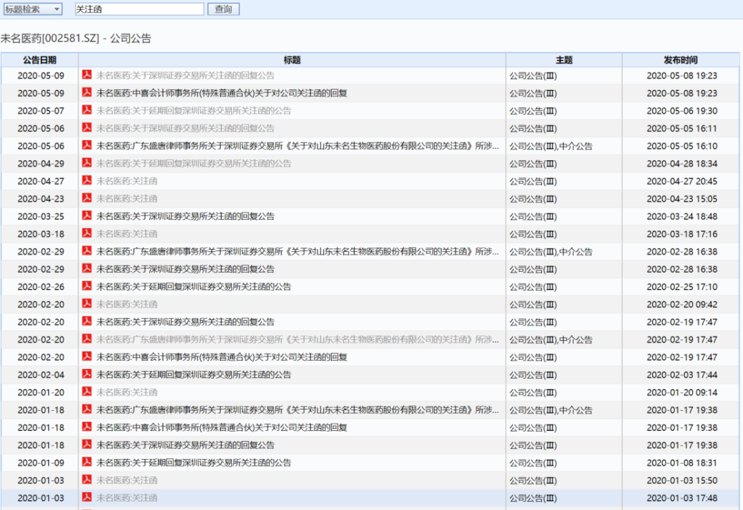 未名医药屡收关注函