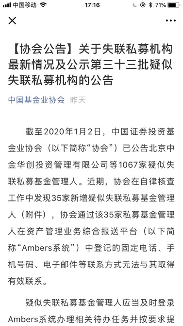 2020年开年,又有35家私募疑似失联,其中上海良卓资产及其旗下机构上海良衫资产、“先锋系”深圳鑫汇元投资也在其中。