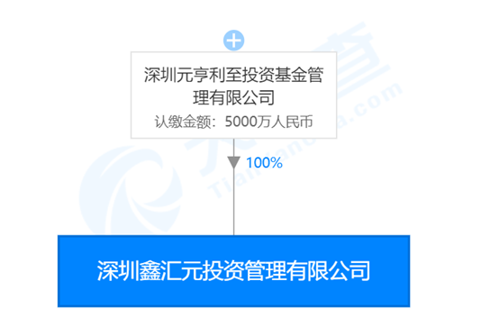 天眼查显示,深圳鑫汇元成立于2015年7月2日,注册资本5000万元,法人代表为黄杰。公司控股股东为深圳元亨利至投资基金管理有限公司。