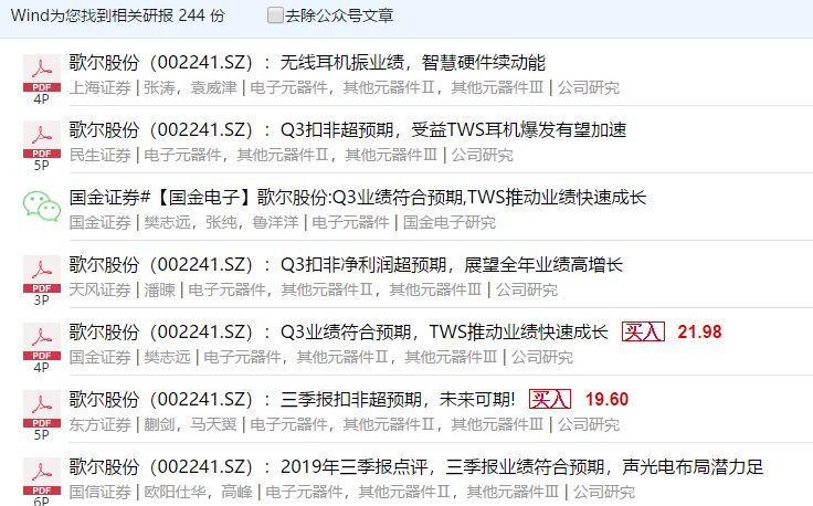 资料显示,仅10月24日,就有5家证券研究机构针对歌尔股份发布了5份研报,均给予买入投资评级。