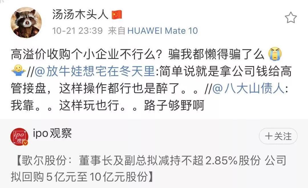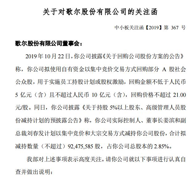 一边是董事长及副总裁减持套现,一边是歌尔股份自掏腰包回购公司股权。10月24日,三季报发布后深交所立即下发关注函。