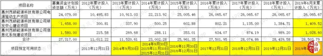 茂硕电源2012年上市募集2.7亿元的资金想要发展三个募投项目,预计2013年12月31日均能达到预定可使用状态。