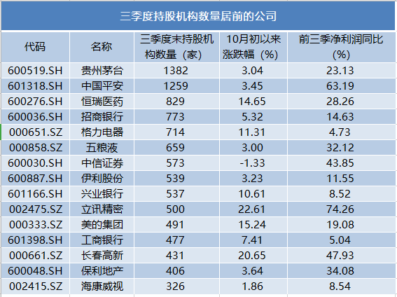 随着三季报收官,机构在三季度的持股版图浮出水面。