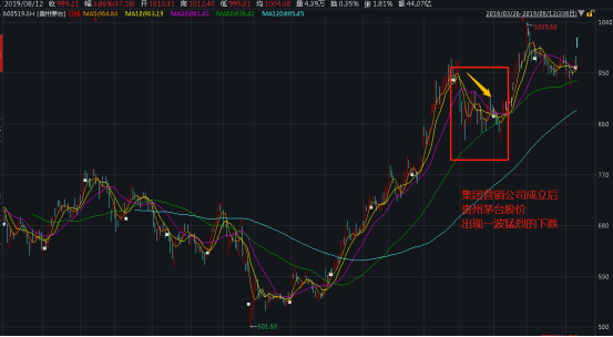 另一方面,营销公司的设立似乎也打破了投资者对贵州茅台未来出现大幅增量的预期。去年开始,贵州茅台取消了多家经销商资格,市场预期,上市公司会直接销售产品,部分产品的批发和零售之间的差价就被上市公司赚到,如此一来,支撑了贵州茅台未来的股价涨幅。而集团层面设立营销公司后,这部分增量可能就会从公司流失,甚至带来更多利润的损失。