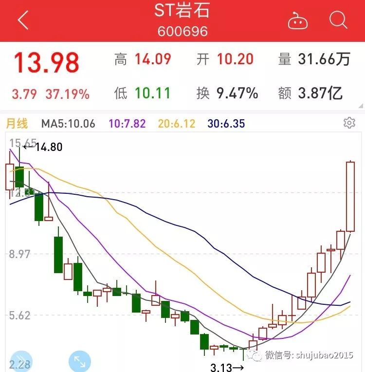 ST岩石又双叒叕创新高了。今天,该股小幅低开后快速上行,盘中一度涨超2%至14.09元,再度创出年内新高。截至昨日收盘,该股年内股价已大涨181.63%,剔除次新股后位居A股涨幅榜第37位,成为表现最好的ST股票。