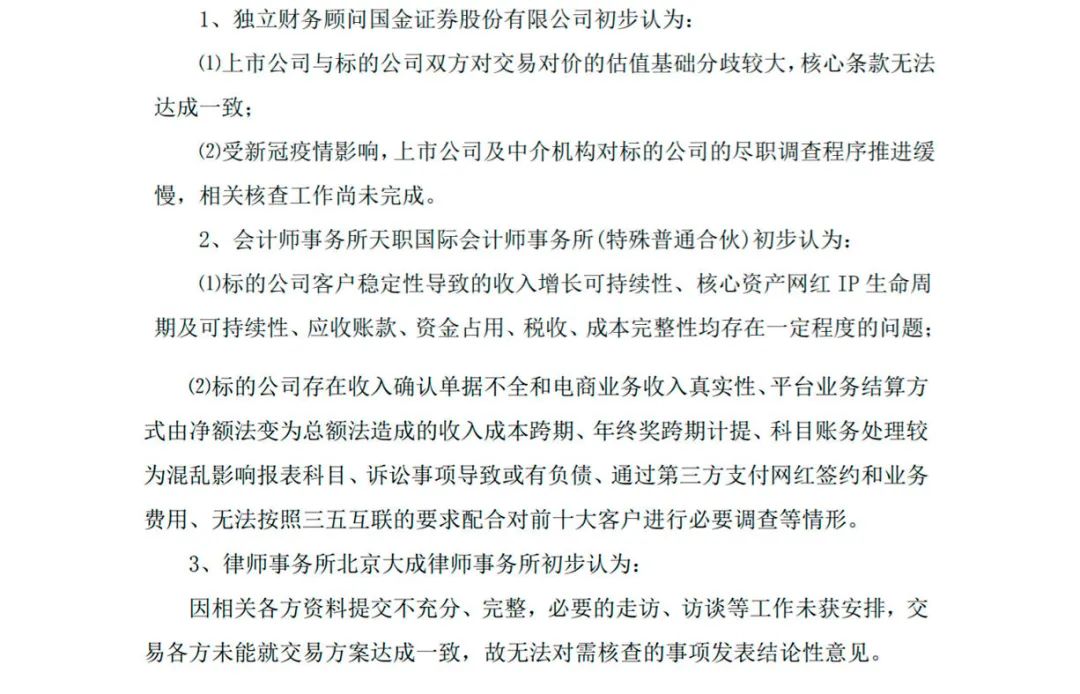 随着公司股价重回原点,公司28日晚间正式宣告重组终止,“网红梦”瞬间破碎了。