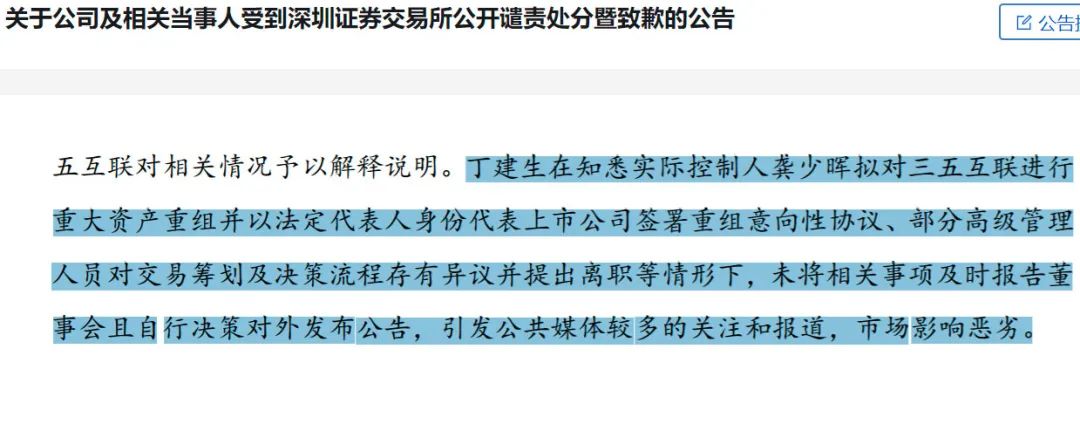 因这项任性重组被监管部门重点“关照”的三五互联,被曝出了内控等多方面的问题。