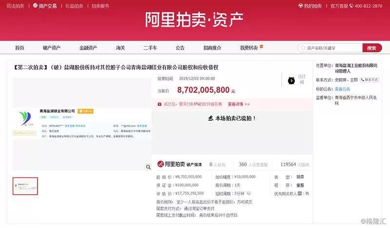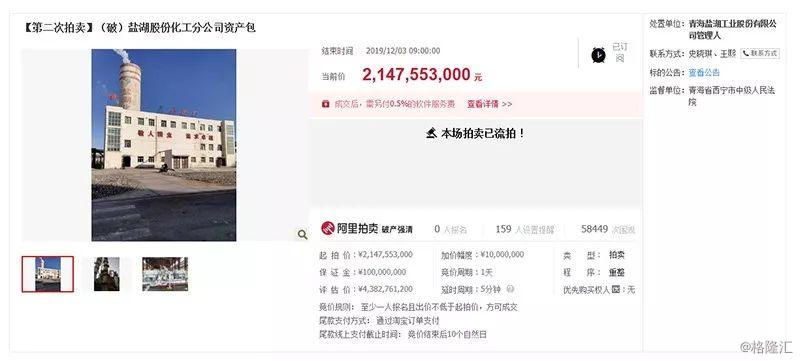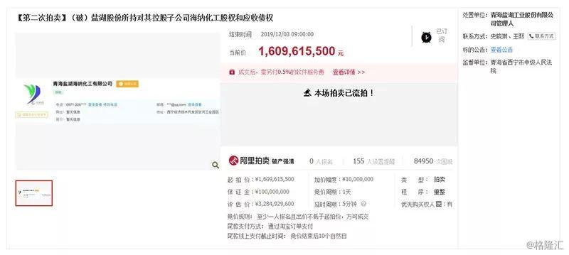 今天上午9点,*ST盐湖的三宗资产在阿里拍卖平台公开竞拍结束,仍没能找到买家。