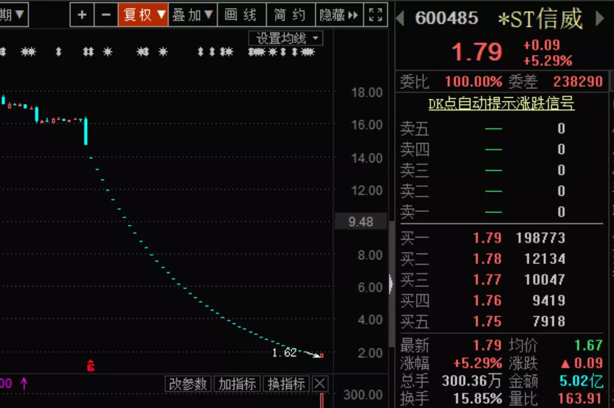 拨开云雾见明月!连续43个跌停后,昔日牛股*ST信威9月10日早盘打开跌停,并上演了罕见的“地天板”行情,截至午间收盘,仍有近20万手买单封于涨停板,与公司此前跌停时数几十万手卖单压于跌停板形成鲜明对比。