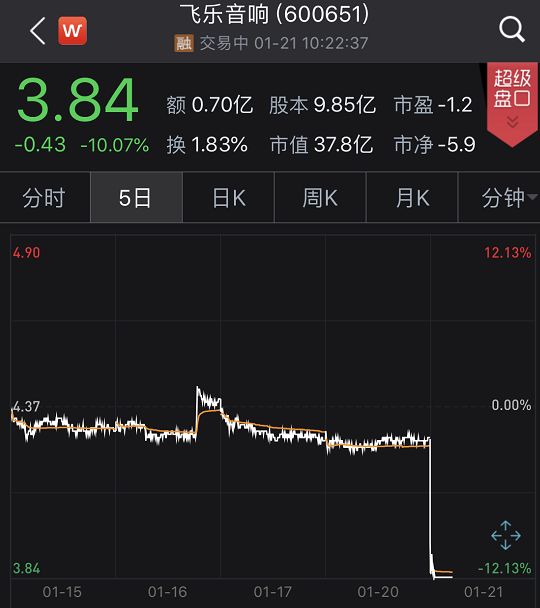 1月20日晚间,飞乐音响(600651.SH)发布了关于公司股票可能会被实施退市风险警示和2019年年度业绩预亏两份提示公告。这不仅冲击了无数老股民的内心,更使一路下滑的股价再次跌入底端。