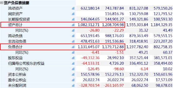 此外,飞乐的资产负债比也摇摇欲坠。截至2019年前三季度报告期末,公司资产总额108.23亿,负债总额113.16亿元,资产负债率104.56%,已然是资不抵债。