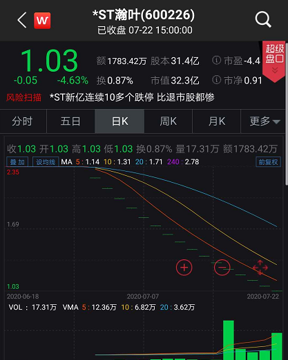 *ST瀚叶逼近面值退市