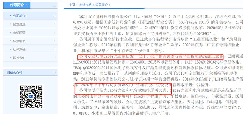 而翻看宝明科技此前公告,公司与铜箔业务并无交集。宝明科技主要从事LED背光源的研发、设计、生产和销售以及液晶面板玻璃深加工业务,主要产品为LED背光源和电容式触摸屏两大类。