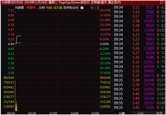 今天开盘,浙商银行报4.95元,较发行价上涨0.20%,集合竞价阶段成交1.51亿元。在进入连续竞价阶段后,股价快速下行,盘中低见4.88元,跌破发行价。