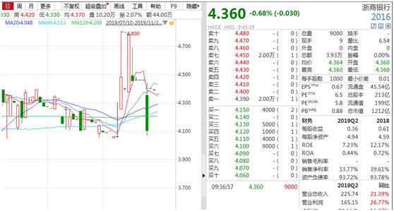另外,行情数据显示,浙商银行H股近日单日成交额均只有数十万港元。由于流动性远不及A股市场,浙商银行A股相对于H股的溢价有一定合理性。