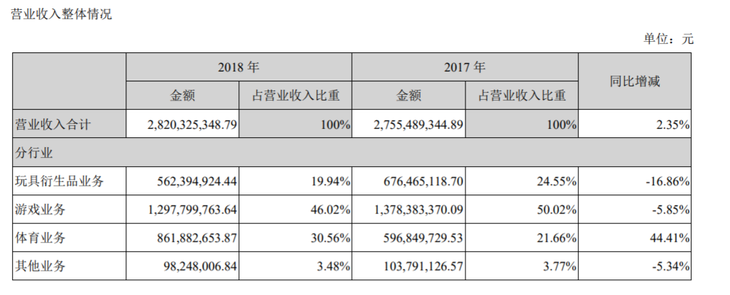 目前,足球俱乐部为核心的体育业务已经超越公司原有主业玩具成为第二大营收来源。