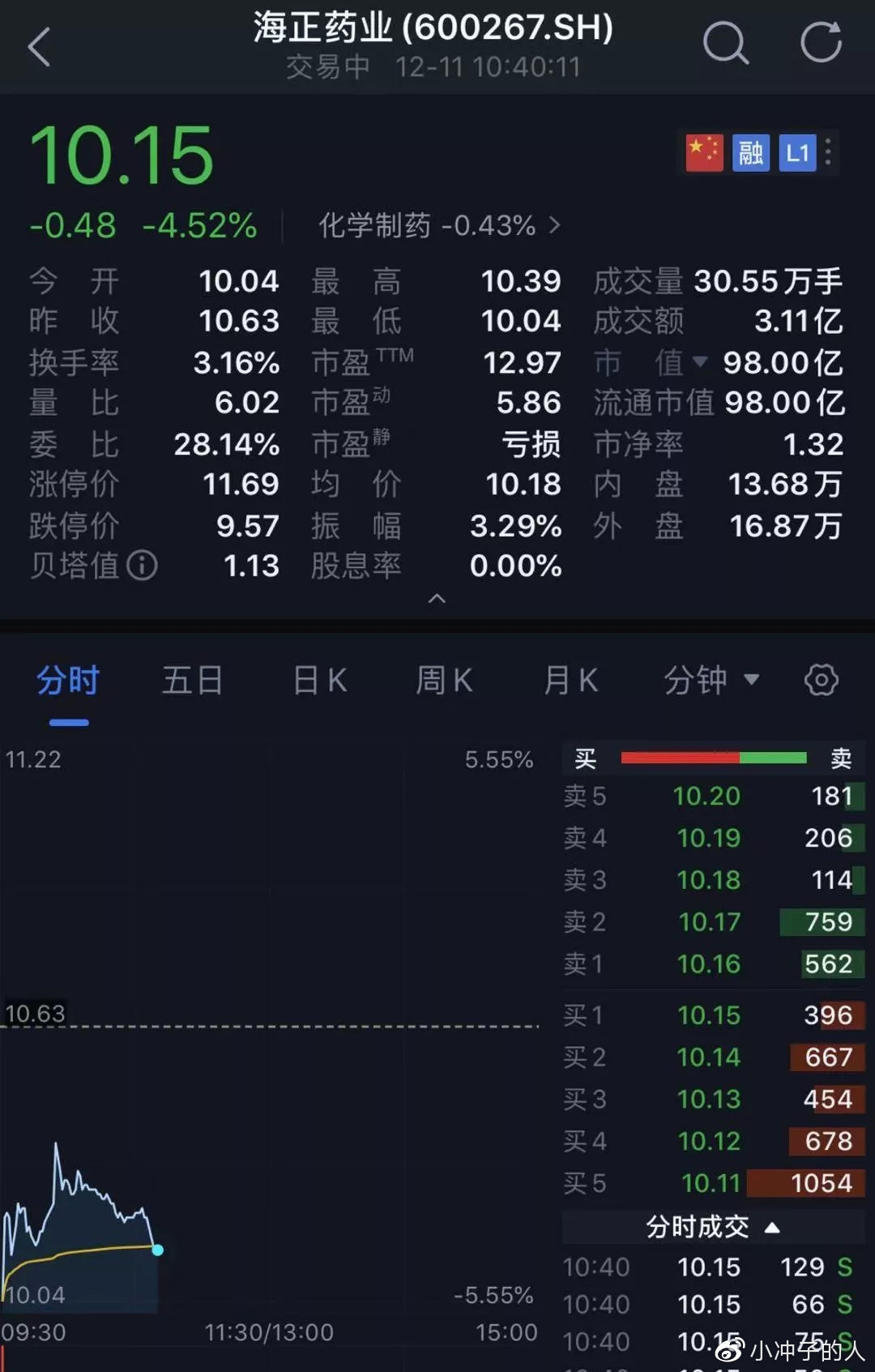 收此消息影响,海正药业早盘大跌超5%,后来跌幅有所收窄,目前跌近4%,A股市值跌破100亿。