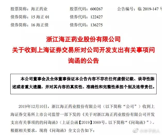 12月10日晚上,上市公司海正药业就发了一份公告,让投资者们猝不及防。