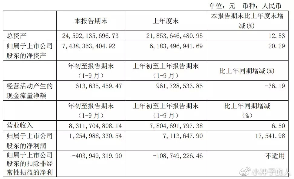 2019年前三季度,公司归母净利润爆发式增长,实现盈利12.55亿元,同比增长17541.98%。与去年同期利润增速39.19%相比,增速大幅上升;与2019年中报利润增速254.51%相比,增速大幅上升。