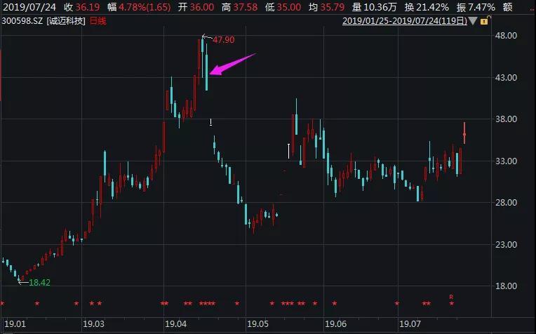 以诚迈科技(300598)为例,此前,4月10日晚间,诚迈科技公告了三大股东的减持计划,合计减持公司不超过16.97%的股份。公司的股价不跌反涨,更是于4月12日、13日连续收出涨停。