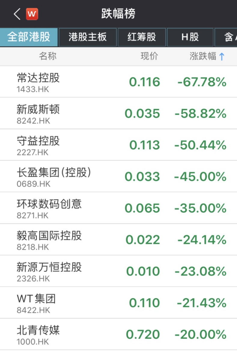 与此同时,港股今日再现仙股集体暴跌,除了常达控股跌近68%外,新威斯顿跌59%报0.025港元、守益控股跌50%报0.11港元、长盈集团跌45%报0.03港元,另外,环球数码创意、高毅国际等均跌超20%。