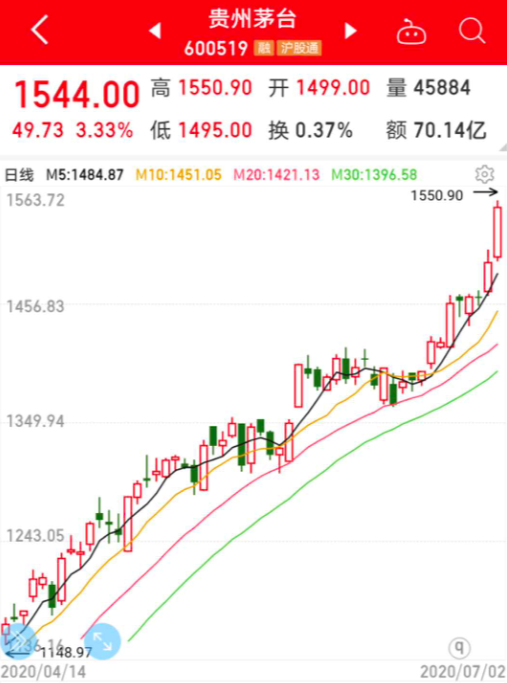 连日来券商及白酒板块轮番大涨,投资者仿佛一下子又嗅到了牛市气息。券商龙头中信建投、白酒龙头贵州茅台昨日同步创下历史高点,光大证券、招商证券、浙商证券、东方财富以及泸州老窖、洋河股份、古井贡酒、五粮液等成为两大领域的大热门。