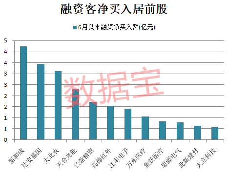 近期以融资客为代表的杠杆资金持续加码A股,目前融资余额已创四年来新高,达到1.14万亿元。部分业绩预增股成为融资客追捧对象,数据显示,6月以来新和成、达安基因、大北农、天合光能、长盈精密、高德红外、江丰电子、万东医疗等股融资净买入超亿元。融资净买入最高的是新和成,达到4.24亿元,最新融资余额突破20亿元。