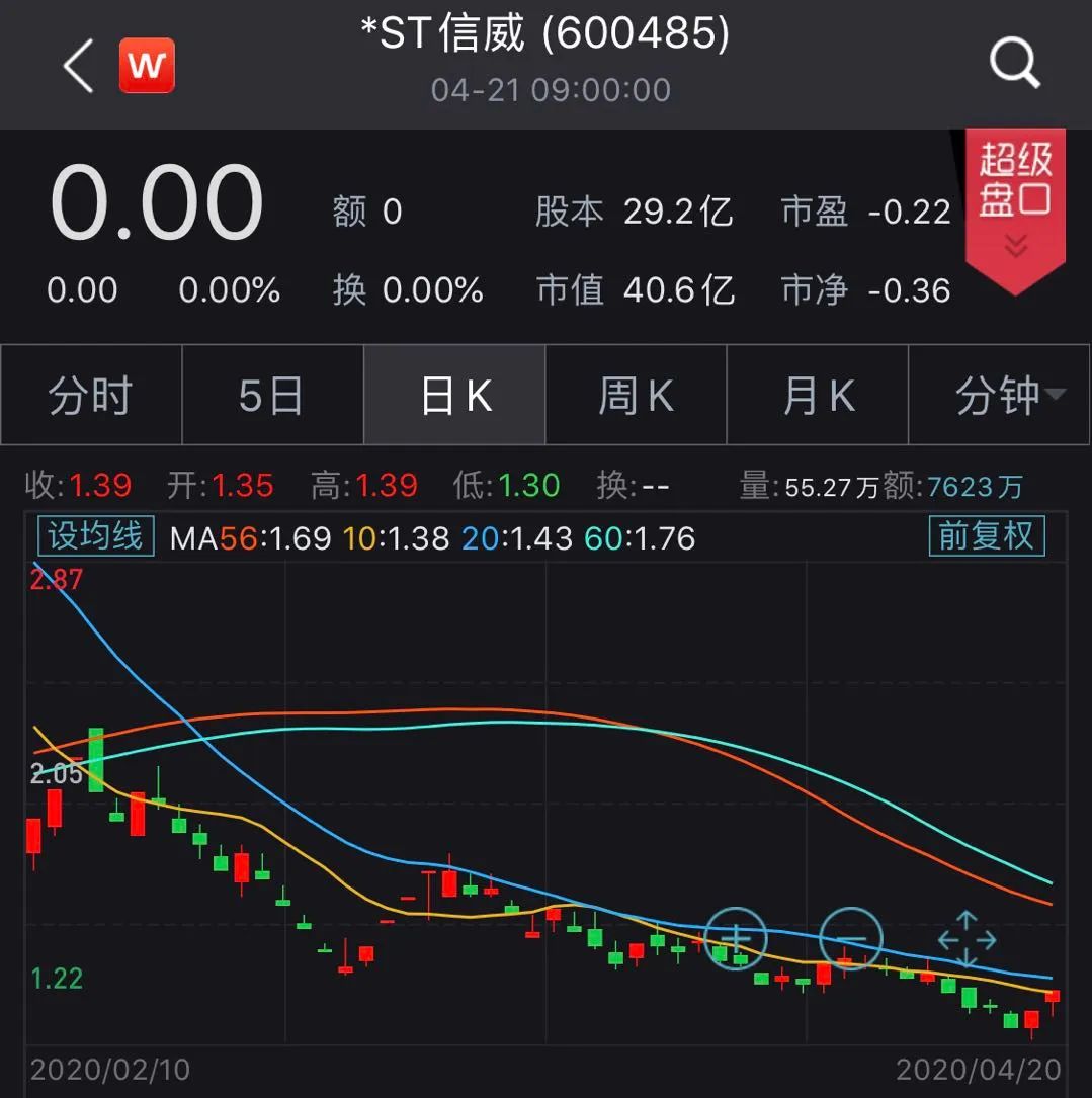 截至2020年4月20日收盘,*ST信威的市值为40.59亿元。