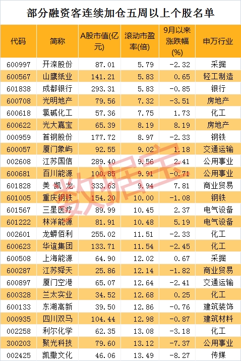 万科A、硕贝德融资净买入额分别为2.33亿元、2.14亿元,融资余额占流通市值比例分别为1.13%、8.19%。融资净买入金额在亿元以上的还有通化东宝、通威股份、招商银行、协鑫集成、石基信息、中信证券等。值得一提的是,融资客亿元加仓的15股中,硕贝德、协鑫集成、中国长城均连续七周获得融资客加仓,在融资客大幅加仓的作用下,这3股本月以来累计涨幅分别达到30.06%、7.13%、23.83%。