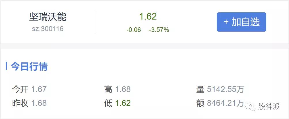 截至今日收盘,坚瑞沃能股价报收1.62元,从2018年4月2日复牌以来,累计下跌近80%。
