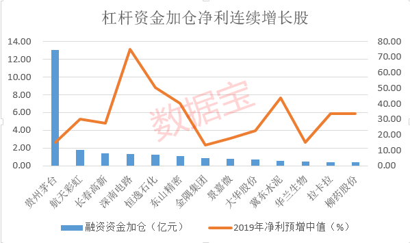 航天彩虹杠杆资金加仓幅度排名第二,相比去年末融资余额增长1.81亿元,公司预告2019年净利预增区间在10%-50%,过去3年内公司净利增幅均超20%,其中2017年增幅高达187%。