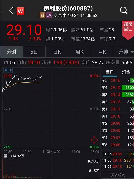 其中伊利股份盘中大涨8%以上,而五粮液股价涨幅逼近4%。