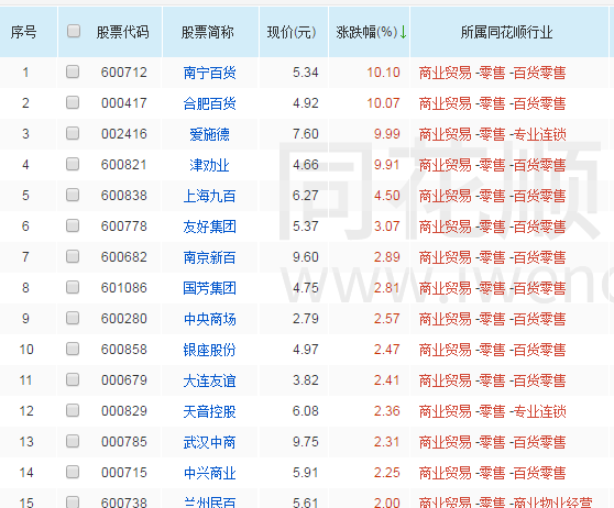 今天,南宁百货更是带着零售板块集体异动,同样是宝能参股的合肥百货强势涨停,爱施德、津劝业同样涨停,上海九百、友好集团、南京新百、中央商场等多只个股涨幅超过2%。