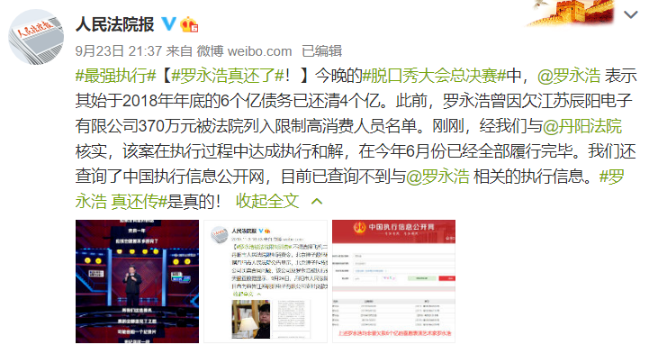 “罗老师6个亿的债务怎么样了?”这个问题的答案来得恐怕比想象中要早得太多。