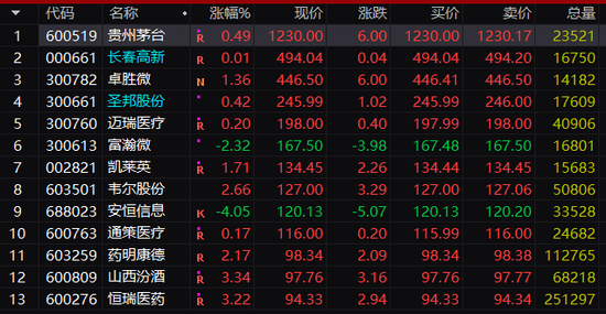 其中,股价超过90元的股票(含贵州茅台)共有13只,长春高新、卓胜微、圣邦股份、恒瑞医药、药明康德等这些股票都呈现“长牛格局”。