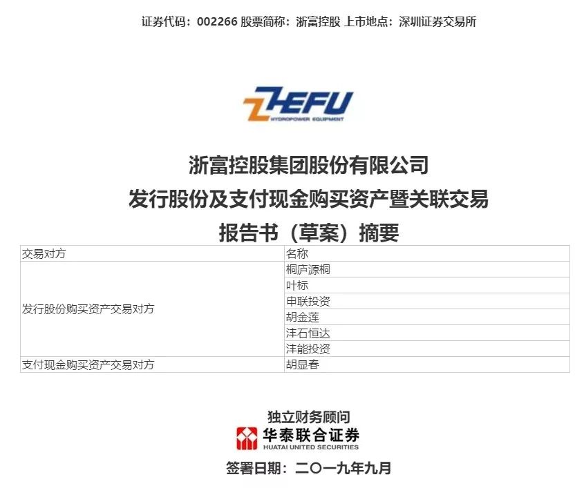 浙富控股昨日晚间公告称,公司拟发行股份的方式购买申联环保集团100%股权,交易对手为桐庐源桐实业有限公司、叶标、浙江申联投资管理有限公司、胡金莲、平潭沣石恒达投资管理合伙企业(有限合伙)、宁波沣能投资管理合伙企业(有限合伙),交易对价为129.2亿元。