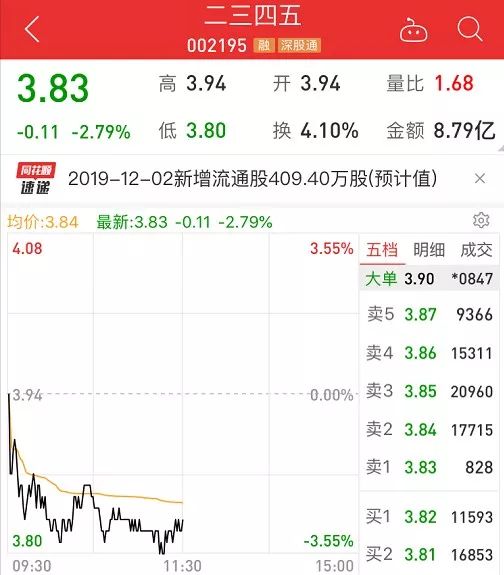 公司目前的货币资金并不足以支付收购所需现金,上市公司持有已上市的股票二三四五无疑是很方便卖出变现的。不知是否受浙富控股可能减持影响,二三四五今日上午大跌2.79%。