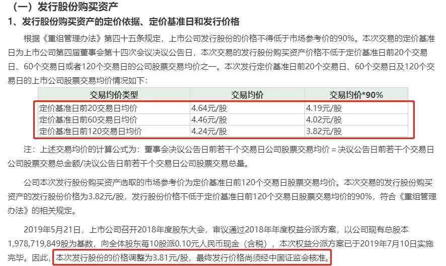 而在本次交易发行价的确定方面,上市公司选择了发行前120个交易日的均价作为基准,相比20日、60日的均价,这一价格最低。发行前20日、60日、120日均价90%分别为4.19元、4.02元、3.82元,再减去每股0.01元的分红。