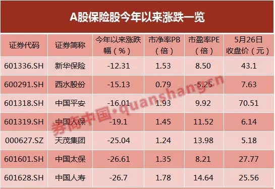 今年以来的资本市场震荡中,保险股表现不佳。截至5月26日收盘,保险指数已跌去了17.58%,同期上证综指下跌6.67%,保险股跌幅远超大盘。