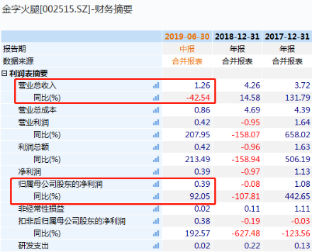 2019年半年报数据披露,公司当期营业收入为1.26亿元,较上年同期下降42.54%(去年同期含医疗健康产业收入,本期已出表,故同比下降);实现归属母公司所有者的净利润3922.61万元,较上年同期增长92.05%。归属于上市公司股东的扣除非经常性损益的净利润约3764.33万元,同比增长192.57%;基本每股收益0.04元。
