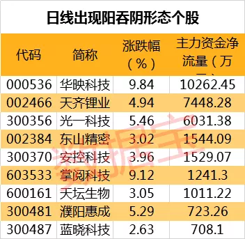 最新数据显示,两市共有28只个股日K线出现阳吞阴形态,当天涨幅最大的是华映科技、掌阅科技、新宙邦,涨幅分别为9.84%、9.12%、5.73%。